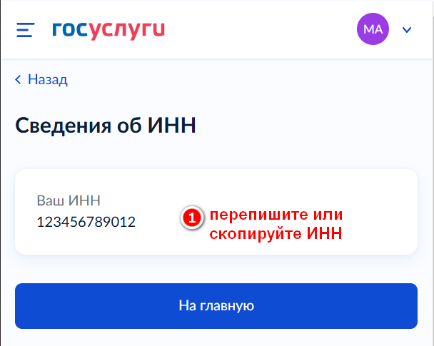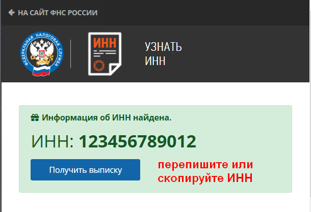 1. Перейдите по ссылке на сайт Госуслуг https://www.gosuslugi.ru/findinn2. Введите логин и пароль от Госулуг. Для этого у Вас должна быть подтвержденная учетная запись на Госуслугах 3. Введите код подтверждения, полученный по смс. 4. Нажмите кнопку "Начать" 5. Перепишите или скопируйте полученный ИНН.