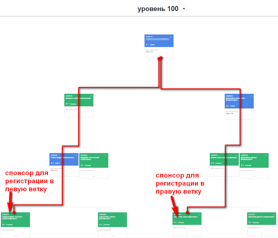 При регистрации нового участника у вас, как у дистрибьютера, стоит задача выбора спонсора, под которого его регистрировать. Для этого нужно открыть структуру и выбрать самого нижнего участника, расположенного в структуре в левых ветках. При этом нужно регистрировать участников в структуре левой или правой ветки, стремясь сбалансировать (уравнять) групповые PV в левой и правой ветке. То есть, если у вас в правой ветке недостаточно групповых PV, то регистрировать в самого нижнего участника в правой ветке. В вашу левую ветку будут регистрировать участники, которые в структуре выше Вас, но вы так же можете регистрировать и в левую ветку, если у ней недостает групповых PV. Как смотреть групповые PV описано в инструкции Как посмотреть, сколько PV накопили мои партнеры