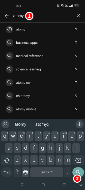 2. Перейдите к поиску и введите в поле поиска "atomy".