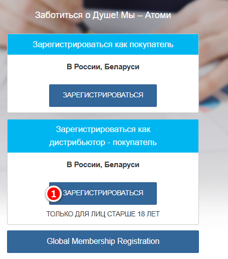 Если Вы сами хотите зарегистрироваться в качестве нового участника, перейдите по ссылке для регистрации, полученной от представителя atomy по инструкции Как создать ссылку для регистрации в Atomy 2. Выберите "Зарегистироваться как дистрибьютер - покупатель". Если вы не хотите зарабатывать в atomy и вводить ИНН, выберите "Зарегистрироваться как покупатель". 3. Выберите страну, введите ФИО кириллицей, выберите пол, введите ИНН и выберите дату рождения. Если вы не хотите вводить ИНН, то вернитесь на шаг 2 и выбирите "Зарегистрироваться как покупатель", однако при этом вы не сможете зарабатывать с Atomy. Ввести ИНН можно после регистрации в любое время, подробнее в инструкции Как изменить данные. Если вы не знаете ИНН, то его можно узнать следуя инструкции Как узнать ИНН При выборе даты рождения сначала выберите год, затем месяц, затем день. 4. Введите два раза пароль. Для отображения пароля в виде символов, а не точек, нажмите на иконку глаза