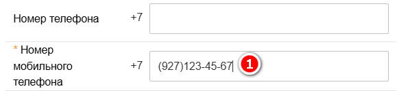 5. Введите номер мобильного телефона. Обычный номер телефона вводить не обязательно.
